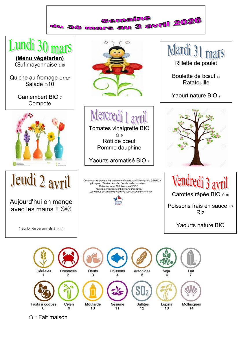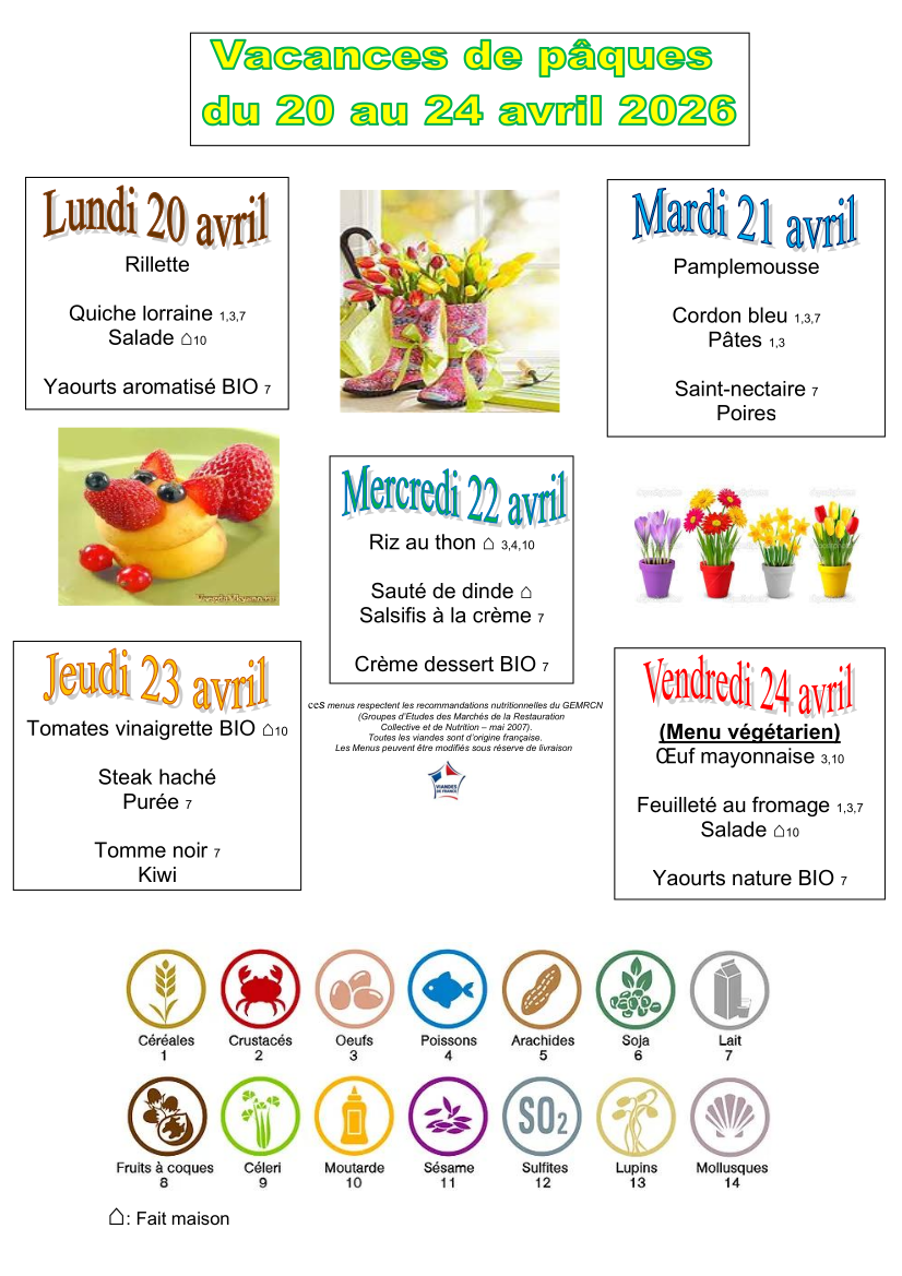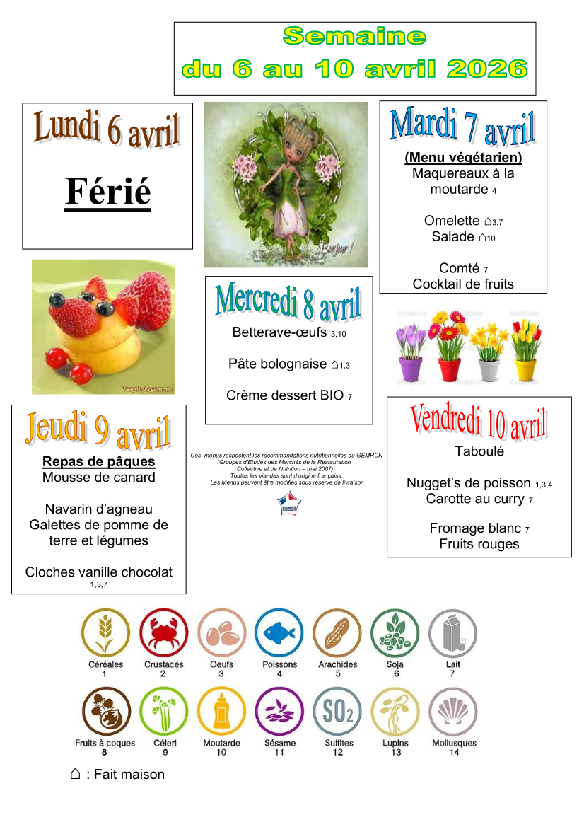 Les menus sont élaborés en veillant à leur équilibre nutritionnel et à leur variété.