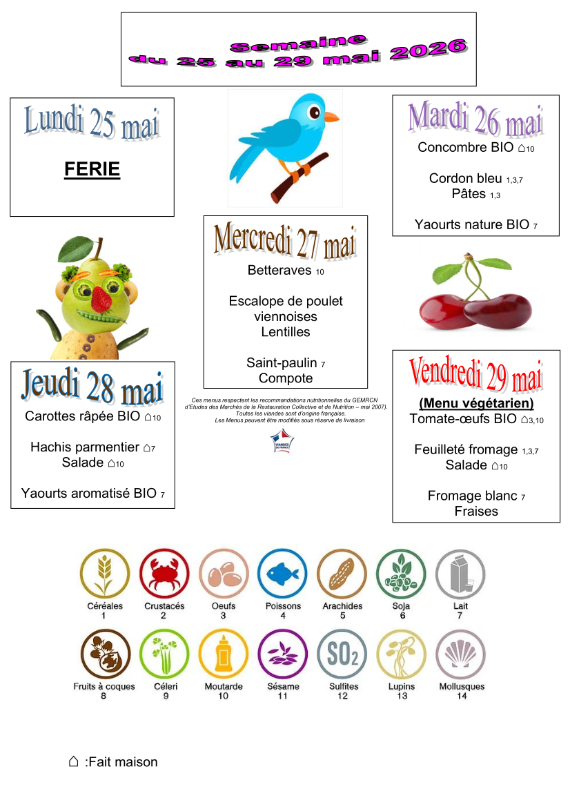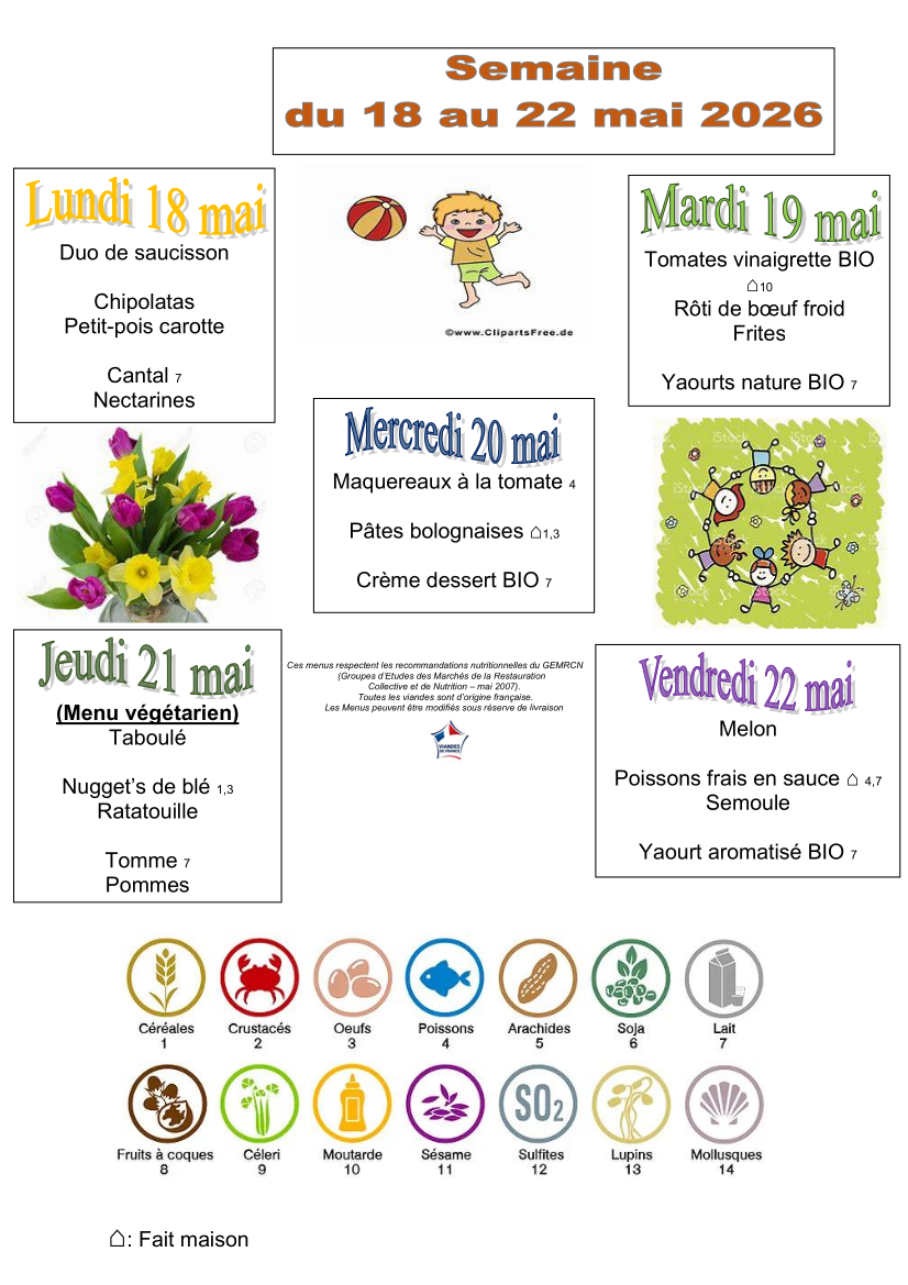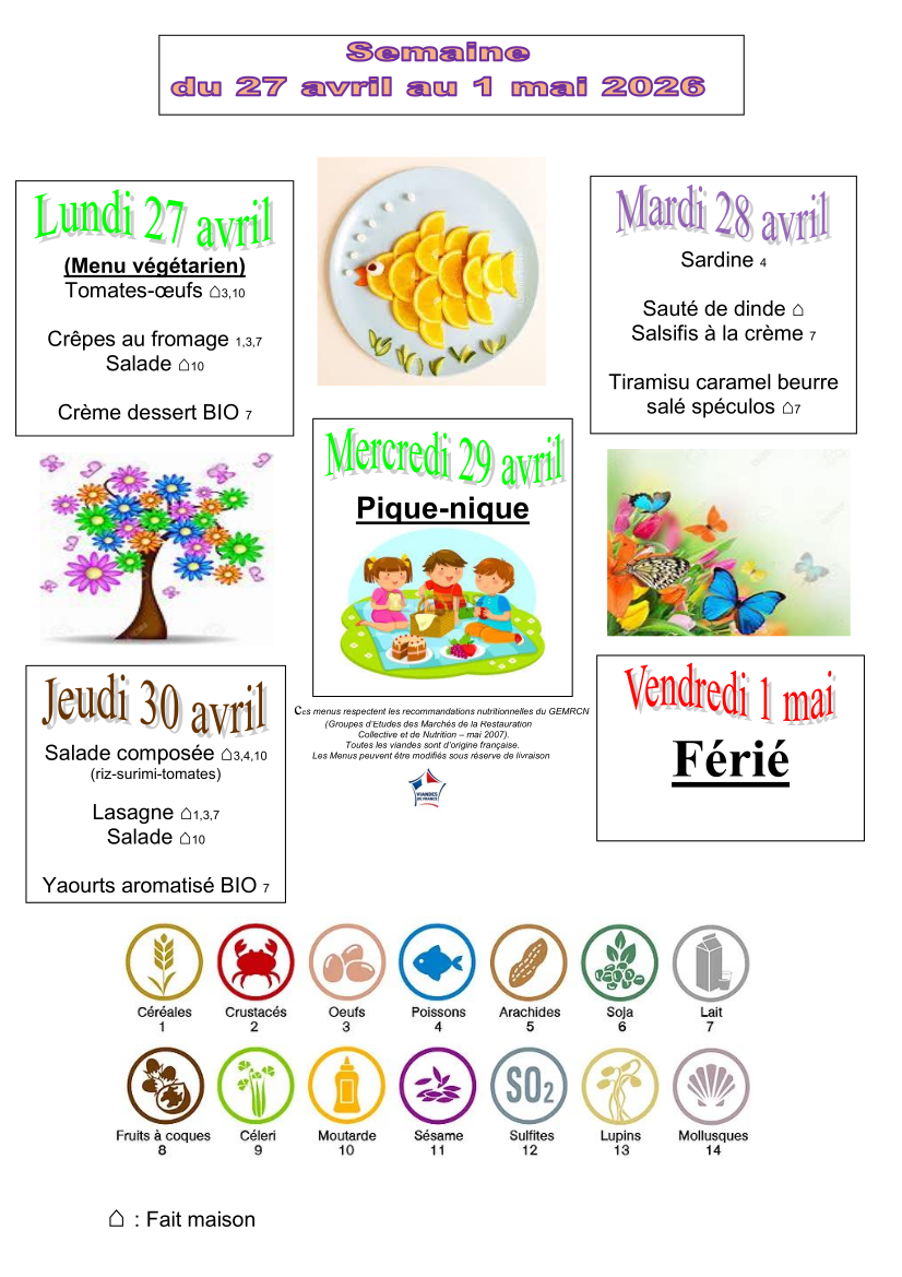 Les menus du restaurant scolaire sont élaborés en veillant à leur équilibre nutritionnel et à leur variété.